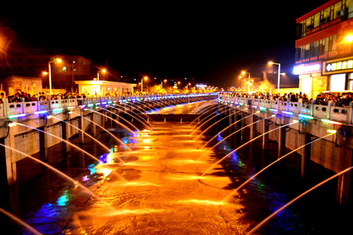 10月1日,國(guó)慶節(jié),代縣縣城關(guān)溝河景觀工程正式竣工蓄水。河道中,兩道鋼閘壩內(nèi),清清的河水碧波蕩漾,河道兩岸是兩條6米寬的景觀大道。道路內(nèi)側(cè),路燈成行,綠樹(shù)成蔭,風(fēng)光如畫(huà)。伴隨著優(yōu)美的樂(lè)曲,河道兩側(cè)的音樂(lè)噴泉噴珠吐玉,不斷變化著造型,在金色的陽(yáng)光下不時(shí)閃現(xiàn)出道道彩虹。到了夜間,音樂(lè)噴泉在明亮的燈光映襯下,更是五彩繽紛,赤橙黃綠青藍(lán)紫,猶如彩練當(dāng)空舞。成為歷史文化名城一道亮麗的風(fēng)景。