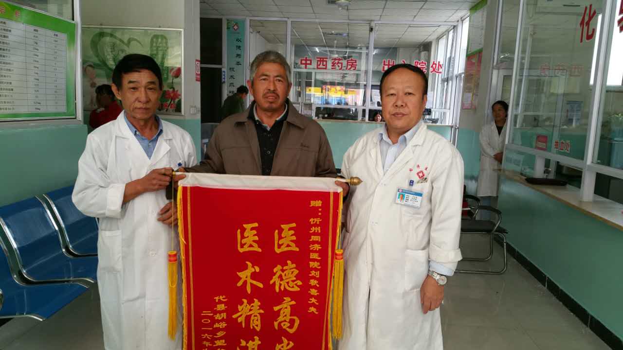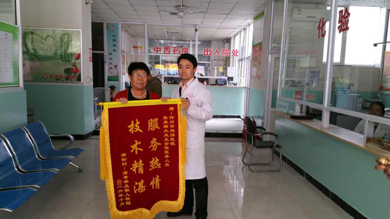 “謝謝您!張大夫,我現(xiàn)在精神好多了,睡眠也好了,吃飯也有胃口了……真是不知道怎樣感謝您才好?!?0月8日,位于忻州市光明西街的同濟(jì)醫(yī)院辦公室,高老先生夫婦握著張大夫的手激動(dòng)地說。其妻子郝女士將早已準(zhǔn)備好的一面“服務(wù)熱情,醫(yī)術(shù)精湛”的錦旗送到張成喜大夫手中。同樣來自代縣胡峪鄉(xiāng)的賈先生也將一面寫有“醫(yī)德高尚,醫(yī)術(shù)精湛”的錦旗送到了該院寧院長手中。