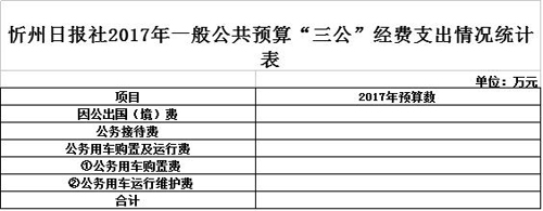 忻州日報社2017年度部門預(yù)算及“三公”經(jīng)費預(yù)算公開情況