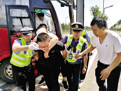 此次演練假設一家客運公司的一輛中巴客車突然起火,乘客被困?!笆鹿省卑l(fā)生后,駕駛員立即撥打了“110”報警電話和“120”救護電話,該公司及時向當?shù)卣畱鞭k、運管、交警部門負責人匯報。接到“事故”報告后,參加演練的運管、交警、“120”等部門人員以最快速度趕到現(xiàn)場,立即啟動應急救援預案,有序開展救援,及時解救被困人員和傷者,疏導恢復正常的交通秩序。整個演練活動各部門配合默契,過程井然有序,現(xiàn)場指揮到位,傷者救助及時,達到了預期效果。(魯明強 張凱)