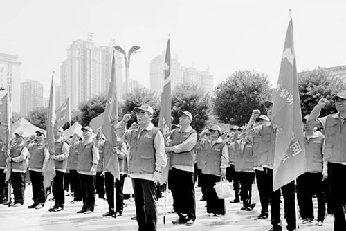 圖為國網(wǎng)忻州供電公司黨員服務(wù)隊進行集體宣誓。