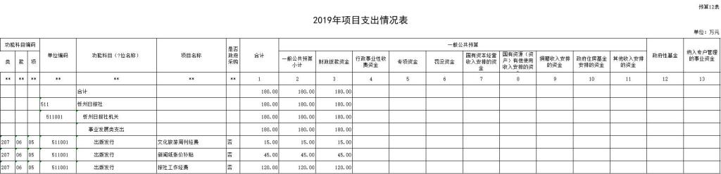 2、項目支出180萬元,比2018年增加55萬元。主要原因為新增《文化旅游》周刊經(jīng)費15萬元,新聞紙漲價補貼經(jīng)費45萬元。廣告收入專項經(jīng)費120萬元,主要用于辦公費、維修費、水電費、差旅費、采暖費、郵電費等日常開支。