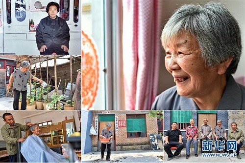申愛苗,女,1949年出生,山西省長治市潞城區(qū)辛安村人,全家5口人靠種植9畝田地為生,2015年因丈夫和兒子相繼患病而失去收入來源,生活貧困。2016年,在當(dāng)?shù)卣膸椭?,申愛苗的兒子參加了脫貧技能培?xùn)并在村里開了一家理發(fā)店。2018年全家脫貧。 右上:申愛苗肖像;左上:申愛苗1995年在家里的舊照;左中:申愛苗在院子里給植物澆水;左下:申愛苗讓兒子給自己理發(fā);下中:申愛苗在清理院子;下右:申愛苗(右二)和家人在院子里合影(拼版照片,6月11日攝)。 地處晉東南的山西省長治市,位于由太行山、太岳山環(huán)繞而成的上黨盆地中。在群山中、崖壁上,許多村莊自然條件惡劣,基礎(chǔ)設(shè)施落后,脫貧致富是大山深處人們的迫切心愿。 近年來,一場場脫貧攻堅戰(zhàn),在一個個深山村打響。政府全力探索脫貧路徑的同時,山區(qū)百姓因地制宜,靠自己的雙手和智慧走上致富路,交出了一份扎實的脫貧答卷。 記者在太行山、太岳山一路尋訪,記錄下多位70歲老人的生活。這些共和國的同齡人,親歷了山鄉(xiāng)的巨變,見證著長治山區(qū)脫貧攻堅偉大工程的一步步推進(jìn)。 新華社記者 曹陽 攝