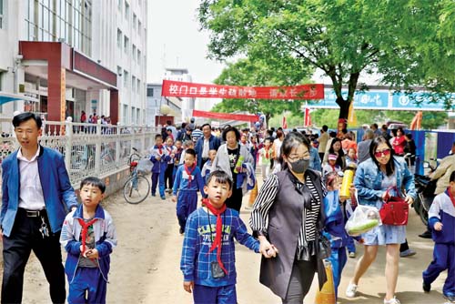 下學(xué)時(shí)段長征路小學(xué)門前秩序井然
