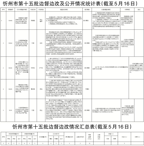 我市高度重視,立即組織查處,截至5月16日,督辦的5件群眾反映問題已辦結(jié)。其中,確認不屬實1件;確認部分屬實4件。對于部分屬實已辦結(jié)的環(huán)保問題,分別采取了相應(yīng)處理措施,共罰款10萬元,對9名相關(guān)責(zé)任人進行約談。對5件群眾反映問題調(diào)查處理情況進行了信息公開。