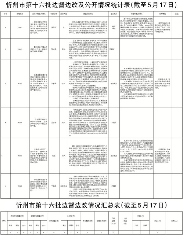 我市高度重視,立即組織查處,截至5月17日,督辦的6件群眾反映問(wèn)題已辦結(jié)。其中,確認(rèn)屬實(shí)1件;確認(rèn)部分屬實(shí)2件;確認(rèn)不屬實(shí)3件。對(duì)于屬實(shí)和部分屬實(shí)已辦結(jié)的環(huán)保問(wèn)題,分別采取了相應(yīng)處理措施,共罰款14萬(wàn)元,對(duì)3名相關(guān)責(zé)任人進(jìn)行約談,對(duì)1名相關(guān)責(zé)任人進(jìn)行誡勉談話。對(duì)6件群眾反映問(wèn)題調(diào)查處理情況進(jìn)行了信息公開(kāi)。