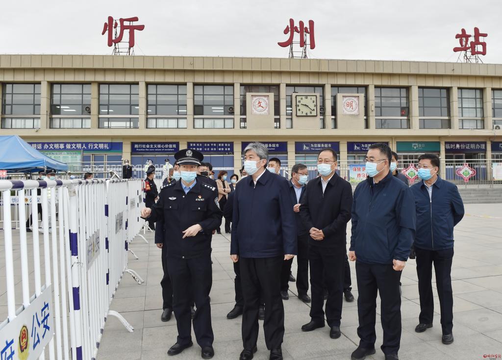 在忻州火車站調研來忻返忻人員“點對點”接返和隔離管控等工作落實情況。馮曉磊 攝