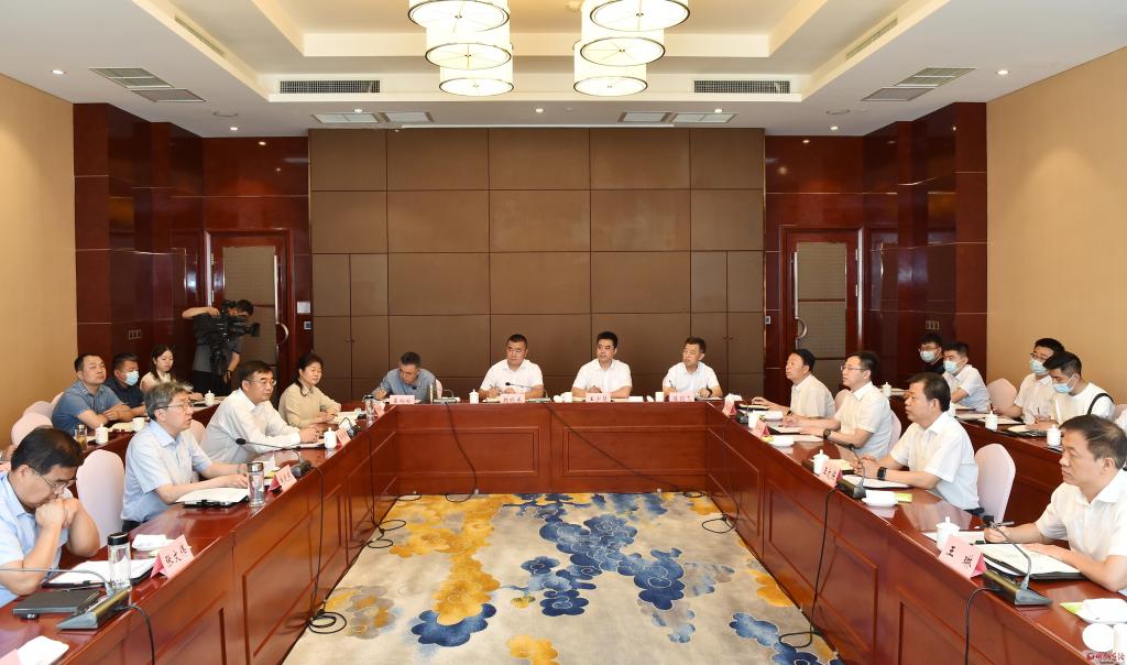 座談會(huì)會(huì)場(chǎng)。馮曉磊 攝 本報(bào)訊 (記者張 曄)6月9日,市委書(shū)記朱曉東與山西文旅集團(tuán)黨委書(shū)記、董事長(zhǎng)王文保一行座談,雙方就深化務(wù)實(shí)合作、推動(dòng)項(xiàng)目建設(shè)進(jìn)行深入交流。市委副書(shū)記、市長(zhǎng)李建國(guó),山西文旅集團(tuán)黨委副書(shū)記、副董事長(zhǎng)、總經(jīng)理王琳出席。市領(lǐng)導(dǎo)張文偉、賈玲香、王建峰,山西文旅集團(tuán)領(lǐng)導(dǎo)郭守俊、郭凱,市政府秘書(shū)長(zhǎng)張艮生參加。