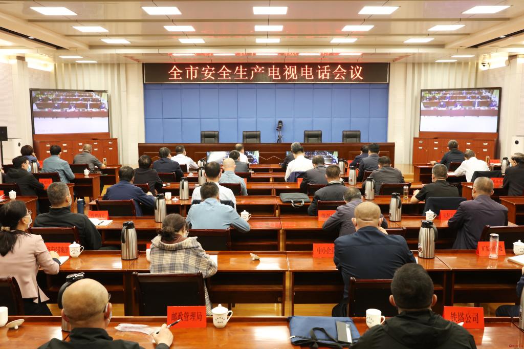 會議會場。范濤 攝 9月23日,全市安全生產(chǎn)電視電話會議召開,貫徹落實全國、全省安全生產(chǎn)電視電話會議精神,就全力抓好國慶和黨的二十大期間安全生產(chǎn)工作,堅決防范遏制重特大事故發(fā)生,進行再動員再部署再督促。市委書記朱曉東主持會議并講話。副市長、市公安局局長史紅波,市政府秘書長張艮生出席。市直相關(guān)部門和單位主要負(fù)責(zé)人在忻州主會場參加會議,各縣(市、區(qū))、五臺山風(fēng)景名勝區(qū)設(shè)分會場。