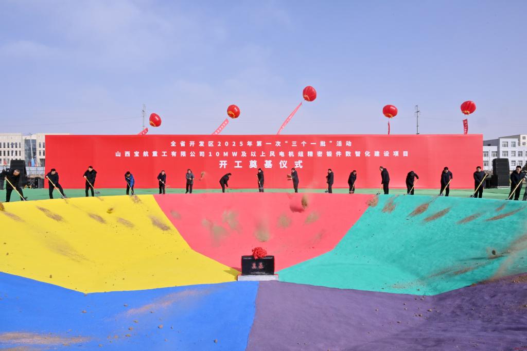 全省開發(fā)區(qū)2025年第一次“三個(gè)一批”活動(dòng)山西寶航重工有限公司10MW及以上風(fēng)電機(jī)組精密鍛件數(shù)智化建設(shè)項(xiàng)目開工奠基儀式現(xiàn)場。馮曉磊 攝
