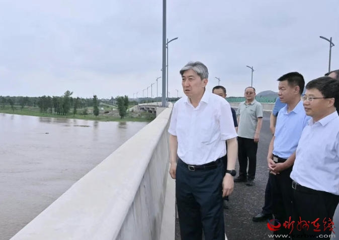 8月4日,市委書記朱曉東在滹沱河忻原橋調研防汛備汛工作,了解群眾轉移、安置點設置等情況 。馮曉磊攝