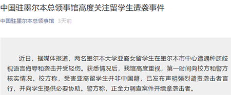 中國(guó)駐墨爾本總領(lǐng)事館微信公號(hào)截圖