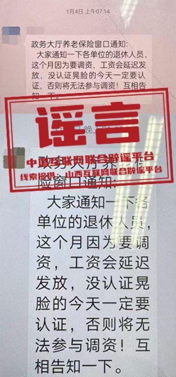 謠言:山西大同“退休人員今天一定要認證,否則將無法參與調資”?