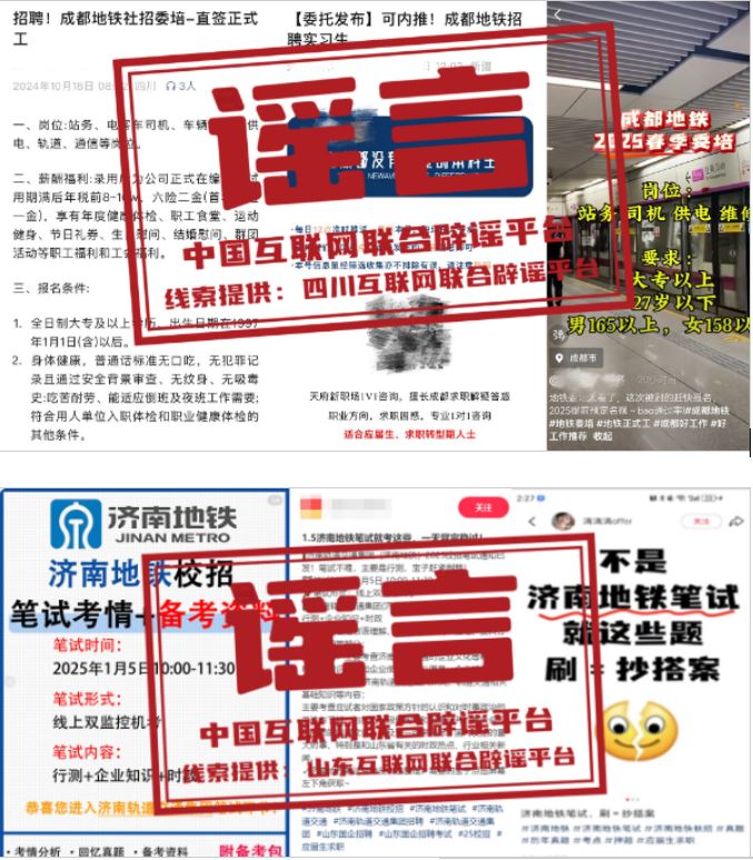 謠言:成都地鐵招聘“提前預定名額”?濟南地鐵校園招聘有“真題”?