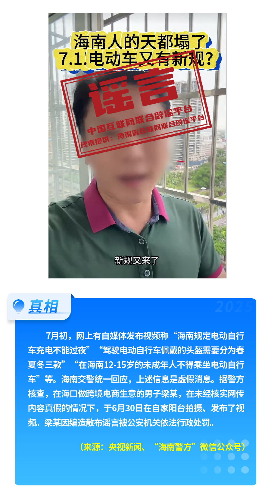 有人重新翻炒“醫(yī)?!畟€人賬戶’將全部取消”舊謠,故意歪曲醫(yī)保改革真實內(nèi)涵,嚴重誤導公眾對醫(yī)保改革政策的理解?!坝袑H松祥T服務激活醫(yī)保碼”,披著“公共服務”的外衣,實有詐騙之嫌和安全風險。憑空捏造“海南規(guī)定電動自行車充電不能過夜、頭盔分三季”這一“奇葩規(guī)定”,以“新規(guī)”話術,擾亂交通管理秩序。