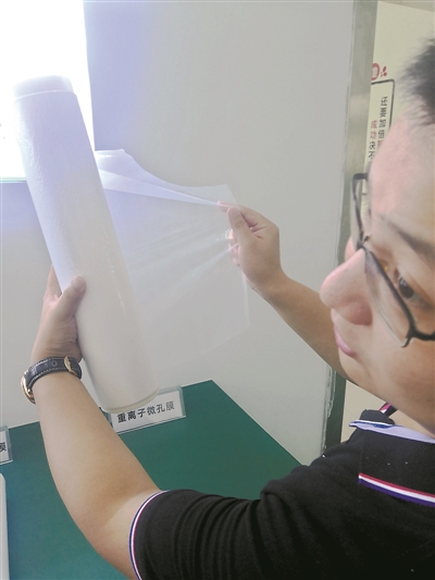 而微孔膜毫無上述缺陷,它的每個(gè)孔道都是直線貫通,且大小相等,可耐高溫,過濾物質(zhì)無法留存,一沖一刷即清除干凈——這也是離子膜口罩可經(jīng)燙洗消毒重復(fù)使用的原因之一。(文、圖/廣州日報(bào)全媒體記者謝英君、秦仲陽)