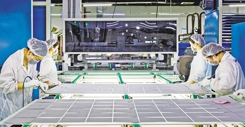 蘇州高新區(qū)內(nèi)企業(yè)蘇州協(xié)鑫光伏科技有限公司生產(chǎn)車間。 薛惠友攝(資料圖片)