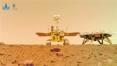 距離火星表面還有1.5千米時(shí),一路保護(hù)著我們、像龜甲一樣的背罩連帶著降落傘被拋掉。與此同時(shí),主發(fā)動(dòng)機(jī)打開,強(qiáng)大的反作用力使我們的速度逐漸降低,光學(xué)成像敏感器開始對(duì)下方進(jìn)行成像。在距離火星表面還剩100米的時(shí)候,著陸平臺(tái)懸浮在空中,對(duì)腳下的地表進(jìn)行激光三維成像,選擇最佳的著陸位置。位置確定后,著陸平臺(tái)在主發(fā)動(dòng)機(jī)的精妙控制下開始緩緩下降。終于,隨著一團(tuán)塵埃被氣流濺起,著陸平臺(tái)的4只腿穩(wěn)穩(wěn)落在了火星烏托邦平原。火星終于迎來了它的第一位中國客人。