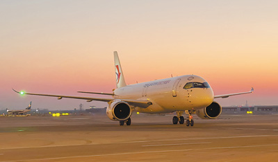 早在2007年,東航首家開啟了“京滬空中快線”,也是國內(nèi)首條“空中快線”。截至目前,東航已接收4架C919大型客機,致力于將C919打造成主流成熟機型。2023年5月28日,東航全球首架交付的C919在上海虹橋—北京首都航線商業(yè)首航成功;自當(dāng)年5月29日起,C919開始執(zhí)行上海虹橋—成都天府定期航線;2023年9月28日,東航簽約增訂100架C919飛機,成為全球最大C919用戶。2024年東航將按計劃從中國商飛接收C919飛機。
