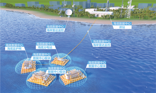 沉入海底的數(shù)據(jù)艙并非就此成為“孤島”,它與岸站、水下分電站和海底光電復(fù)合纜共同組成了海底數(shù)據(jù)中心。海底光電復(fù)合纜聯(lián)通其余3部分,將電力和網(wǎng)絡(luò)分配到每一個獨立的海底數(shù)據(jù)艙。