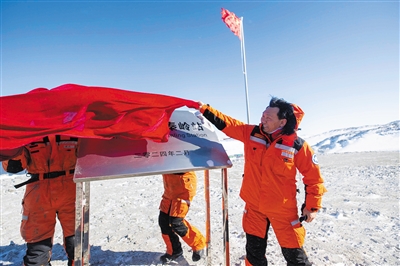2月7日在中國(guó)南極秦嶺站拍攝的揭牌儀式。新華社記者 周圓 攝