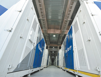 大連全釩液流電池儲(chǔ)能調(diào)峰電站的電池集裝箱。 中國(guó)科學(xué)院大連化學(xué)物理研究所供圖