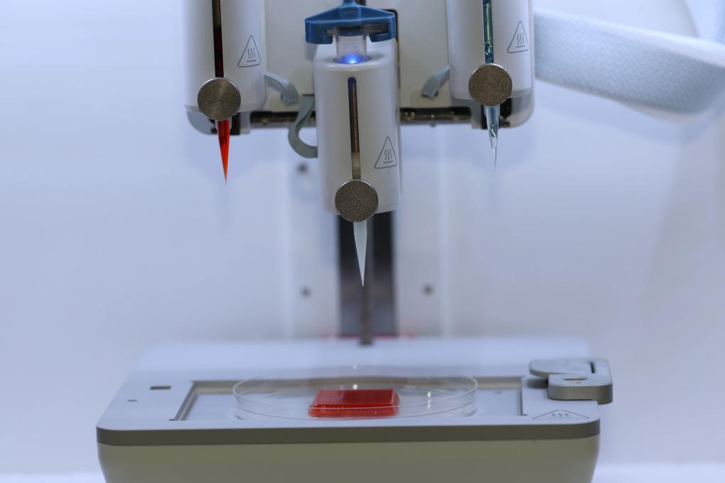在陣陣規(guī)律的“打印”聲中,裝有紅色和白色“生物墨水”的打印噴頭來回移動(dòng),白色托盤里方塊形狀的“豬肉”逐漸變厚,色澤誘人……走進(jìn)南京農(nóng)業(yè)大學(xué)肉品質(zhì)量控制與新資源創(chuàng)制全國重點(diǎn)實(shí)驗(yàn)室,科研人員正在開展3D生物打印細(xì)胞培養(yǎng)肉研究。