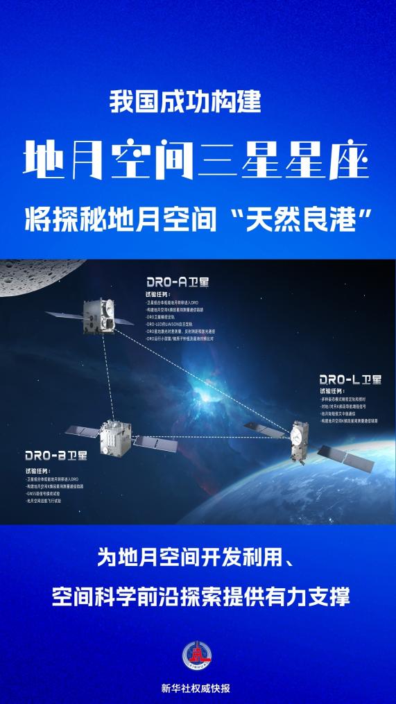 記者從中國科學院空間應用工程與技術中心獲悉,我國已成功構建由三顆衛(wèi)星組成的地月空間三星星座,將聚焦地月空間遠距離逆行軌道(DRO)開展深入科學研究。
