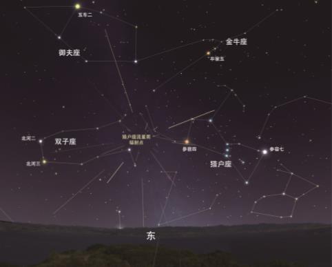 獵戶座流星雨輻射點及其周邊星座示意圖。(北京天文館供圖)