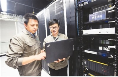 11月2日,國網(wǎng)杭州供電公司信息通信分公司工作人員在通信機房檢查量子通信設(shè)備。(人民視覺 龍巍 攝)