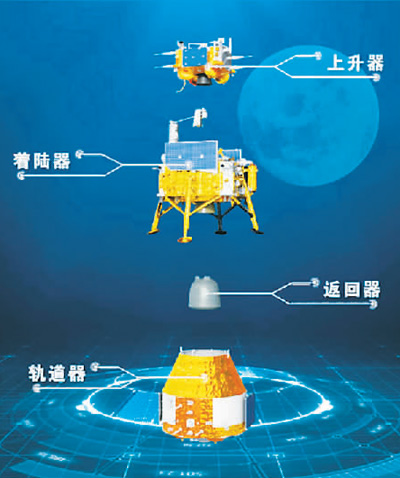 嫦娥六號(hào)各部分示意圖。圖片來(lái)源:國(guó)家航天局官網(wǎng)