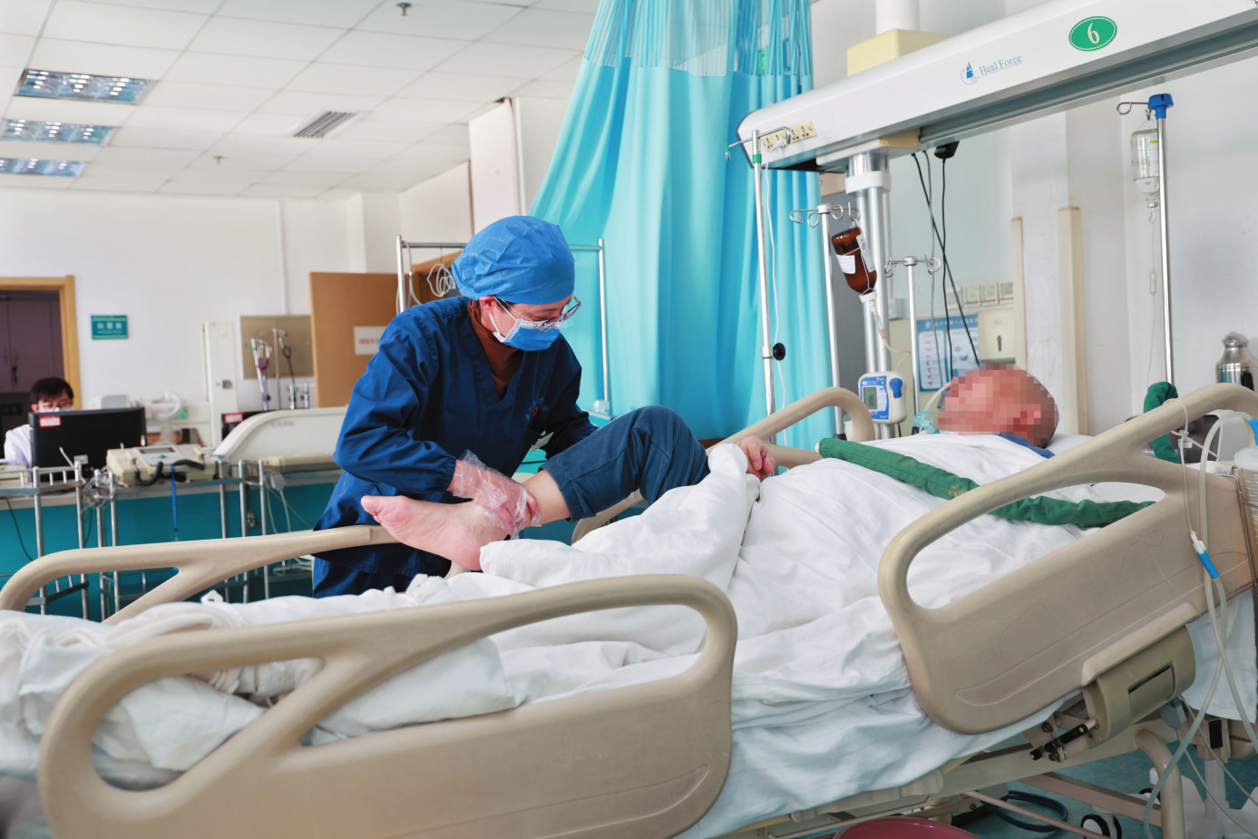 “相比普通病房,ICU護(hù)士的工作要更繁瑣,使用到的醫(yī)療器械要更多,面對(duì)的突發(fā)事件也多,要隨時(shí)做好與‘死神’搏斗的準(zhǔn)備?!比挝南家贿吋?xì)心地更換夾在患者手指的氧飽和度儀,避免患者壓到導(dǎo)線,一邊在忙碌間隙告訴記者,“ICU病房不允許家屬陪護(hù),病人的進(jìn)食、翻身、清洗等所有護(hù)理都由護(hù)士獨(dú)立完成,面對(duì)這些瑣碎的細(xì)活,護(hù)理工作必須要嚴(yán)謹(jǐn)細(xì)微,不能有絲毫怠慢。”