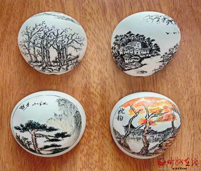 他的幾番“折騰”、數(shù)度“顯擺”、執(zhí)著傳承“非遺”的情結(jié),被制作成電視短片,被寫成技藝故事,一時間街坊鄰里都知道小區(qū)里有一位和蛋殼有感情的“老頑童”,故鄉(xiāng)的新朋舊友及過去的同事,也紛紛為他“蛋殼上作畫”的行為點(diǎn)贊。