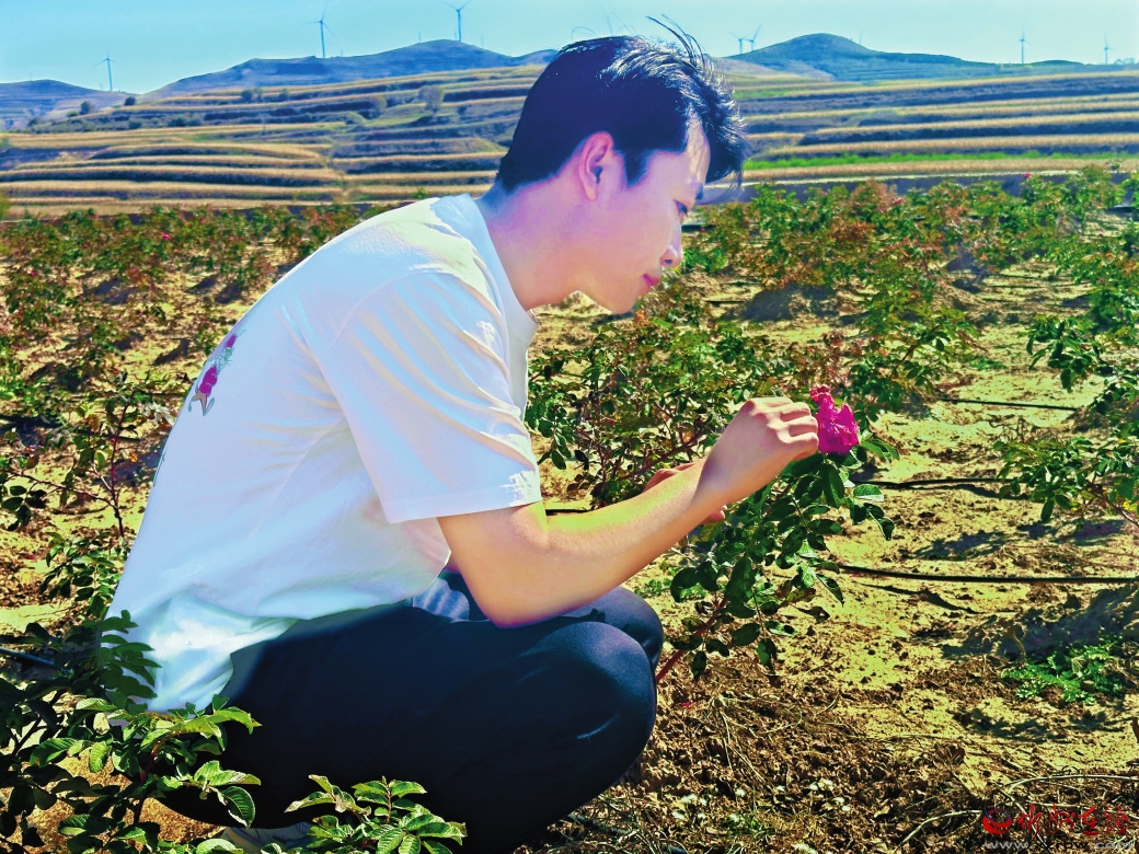 他了解到食用玫瑰有銷路但縣域內(nèi)沒有種植。在與村“兩委”商議后建議村民種植食用玫瑰。這個(gè)想法得到了鎮(zhèn)黨委的認(rèn)可,先在圪坨莊村試種8畝、八角村試種2畝。試種初期出現(xiàn)了問題,田里每日需人工澆灌,看管困難。他又建議村“兩委”鋪設(shè)管道建立滴灌系統(tǒng)和安裝監(jiān)控來實(shí)現(xiàn)精準(zhǔn)管理。他還與村“兩委”商議,利用光伏資金,設(shè)立工作崗位,從建設(shè)種植到開花期日常維護(hù),用工量已達(dá)100余人次,村民的收入也隨著玫瑰花開而增加。玫瑰示范園的建成,為農(nóng)產(chǎn)品深加工、發(fā)展鄉(xiāng)村旅游和補(bǔ)鏈月餅產(chǎn)業(yè)奠定了基礎(chǔ)。