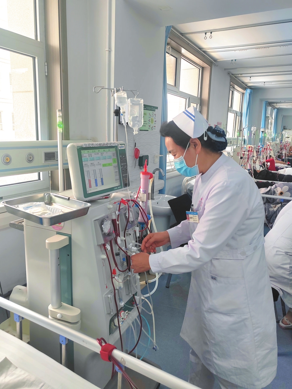 趙香嬋1992年參加工作,2010年被任命為血液透析科護士長,帶領(lǐng)同事積極籌備并組建科室。工作中,她培訓(xùn)護士技術(shù)操作,帶領(lǐng)他們觀察病情、排除機器故障、處理急性并發(fā)癥,下班后修訂相應(yīng)的制度流程,讓醫(yī)院的護理工作做到規(guī)范化、標準化。多年來,她帶領(lǐng)團隊致力于打造原平市一流的血液凈化中心,現(xiàn)科室有長期維持性透析患者190名,每年增加患者30多名,年血液凈化人數(shù)達2.3萬例次,是原平市技術(shù)力量雄厚、病人數(shù)最多、透析人次最多的血液凈化中心,為該市及周邊縣(市)終末期腎病患者提供了就近就醫(yī)的便利,是原平市唯一的重點腎病特色專科。