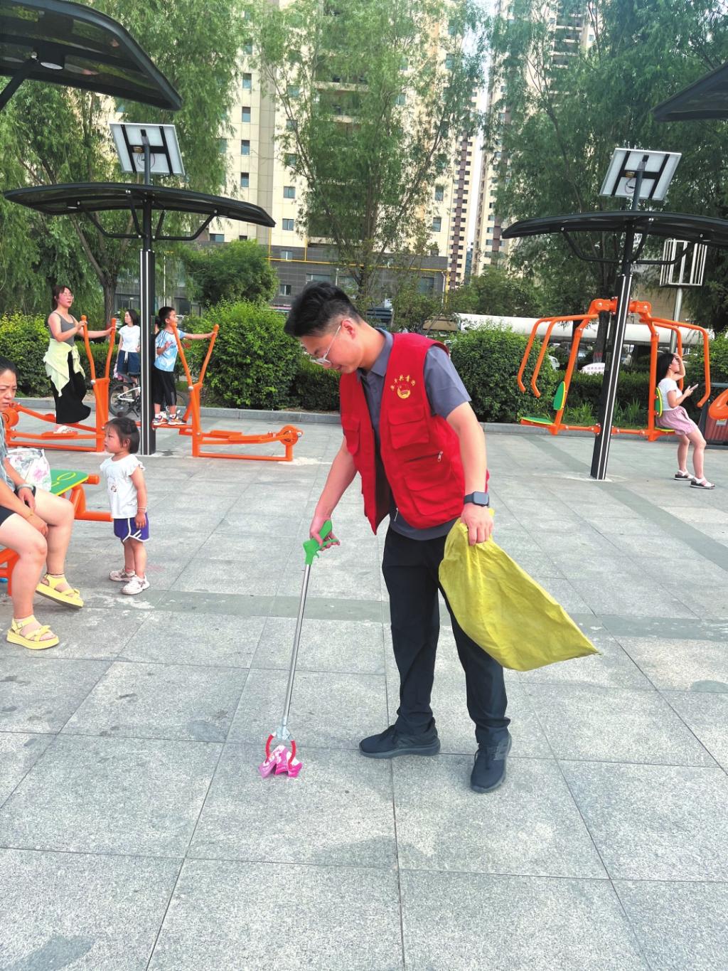 在交通文明勸導(dǎo)中,他不畏嚴(yán)寒酷暑,堅(jiān)守路口和校園周邊,耐心引導(dǎo)市民文明出行,守護(hù)學(xué)生和群眾出行安全。在文體廣場、大型活動現(xiàn)場,他主動清理衛(wèi)生死角、維護(hù)現(xiàn)場秩序,成為城市中一道靚麗的“紅色風(fēng)景”。