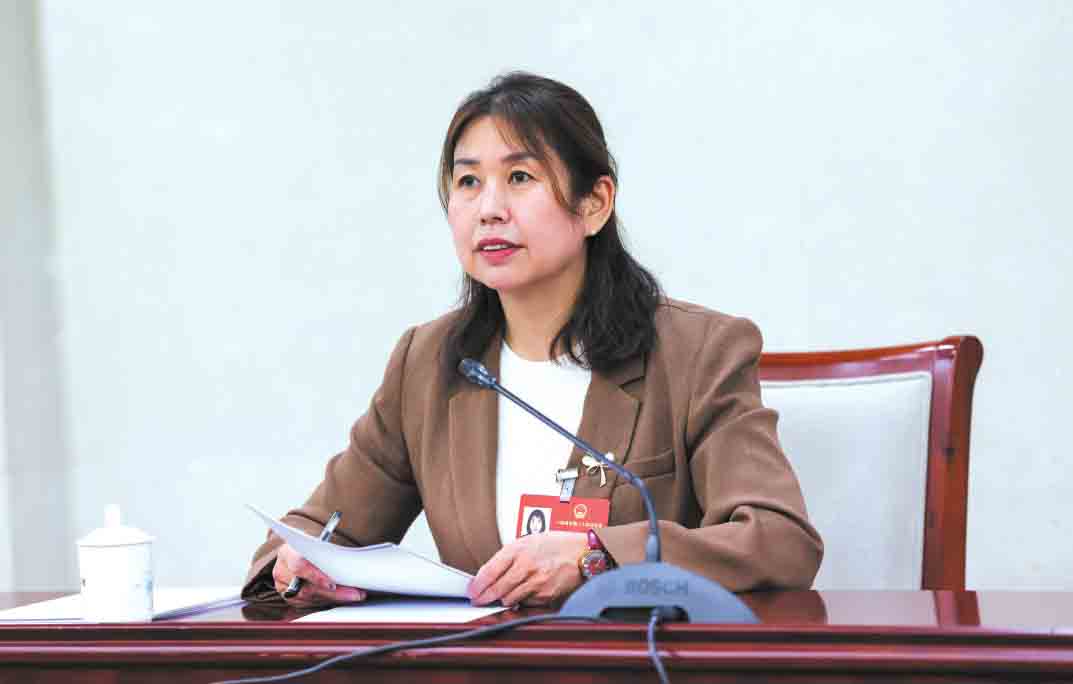 全國人大代表、山西高陶瓷業(yè)有限責(zé)任公司質(zhì)量控制員范銀蓮正在宣講兩會精神。