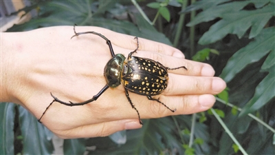 “這種甲蟲的發(fā)現(xiàn)地都是生態(tài)環(huán)境很好的茂密叢林,它的出現(xiàn)可以看做是自然環(huán)境保護(hù)得當(dāng)?shù)囊粋€(gè)標(biāo)志?!壁w力說(shuō),體形對(duì)比之下,格彩臂金龜?shù)捏w形比陽(yáng)彩臂金龜要小一些。陽(yáng)彩臂金龜一般的體長(zhǎng)可以達(dá)到7厘米,而格彩臂金龜?shù)捏w長(zhǎng)只有5厘米多。
