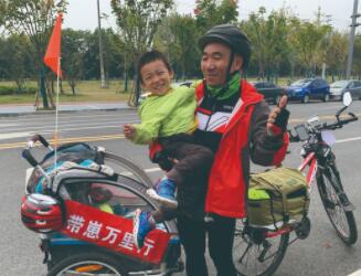幾個月前,湖南株洲45歲的羅新華做出一個很多人難以理解的決定,他要騎自行車帶著三歲半的兒子高高進行一次長達數(shù)千公里的長途騎行。10月2日出發(fā),目前他已騎行1200多公里,途經(jīng)湖南、湖北、江西、安徽,到達江蘇境內(nèi)。沿途,高高見到了大自然中很多新鮮事物,而羅新華也借這次機會第一次與兒子長時間朝夕相處。
