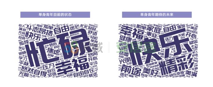 而對(duì)于未來,單身青年們最希望自己能“快樂”,追求“自由”“精彩”的人生,期望擁有“美滿”“幸?!钡摹扒巴尽薄?完)