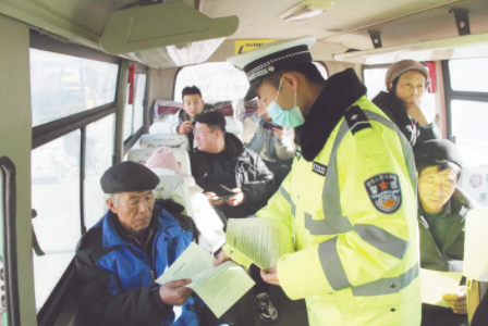 各縣市公安交警在客運(yùn)站、廣場等地設(shè)立交通安全宣傳咨詢臺、擺放交通安全宣傳展板、懸掛宣傳條幅、發(fā)放春運(yùn)交通安全提示的宣傳資料,向過往的群眾講解道路交通安全法律法規(guī)和冬季出行常識,說明酒駕醉駕、超員超載超速、疲勞駕駛、不系安全帶、不佩戴安全頭盔等交通違法行為的危害及后果,引導(dǎo)廣大交通參與者自覺遵守交通法律法規(guī),安全文明出行,全力護(hù)航群眾平安出行?;顒蝇F(xiàn)場,電子屏上滾動播放著的“守法規(guī)知禮讓,共筑平安中國年”“飲酒不駕車,寅虎享平安”等橫幅標(biāo)語格外醒目,春運(yùn)主題的宣傳海報(bào)和短視頻,吸引著人們駐足觀看。