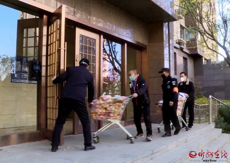 大批裝袋整齊的水果包放在濱河一號(hào)小區(qū)樓下,多名物業(yè)工作人員推著便民購(gòu)物車(chē)來(lái)回忙碌著,大家統(tǒng)一佩戴口罩,嚴(yán)格做好防護(hù)措施,挨家挨戶送貨上門(mén),并全程避免與業(yè)主接觸,最大限度地保護(hù)廣大群眾的健康與安全。