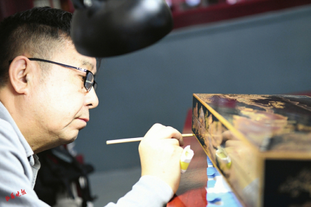 5.山西省工藝美術(shù)大師雷天勇在進(jìn)行漆器創(chuàng)作。