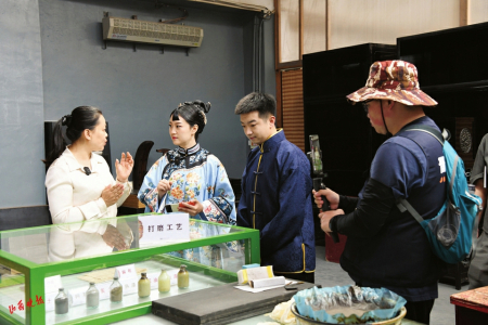 4.本報(bào)直播團(tuán)隊(duì)在唐都推光漆藝文化產(chǎn)業(yè)創(chuàng)意園直播。