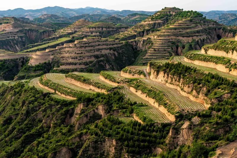 為了實(shí)現(xiàn)耕地有效利用,從2010年起,永和縣在芝河源頭的高山上開(kāi)始了“坡改梯田”工程。
