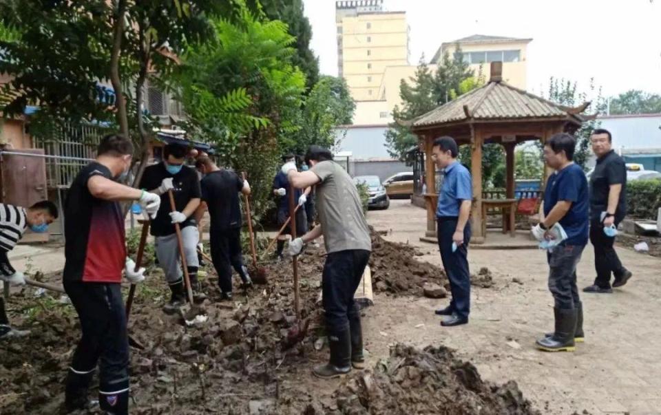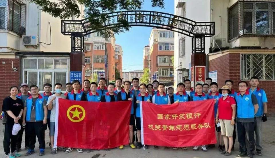 國家開發(fā)銀行鄉(xiāng)村振興部的田扶搖正和國家開發(fā)銀行的碩博志愿者隊一起,在社區(qū)清理淤泥:“大家都是利用周末時間自發(fā)前來的志愿者,有的同事還帶了家屬一起來支援災區(qū),也都想力所能及地出一份綿薄之力?!?/p>