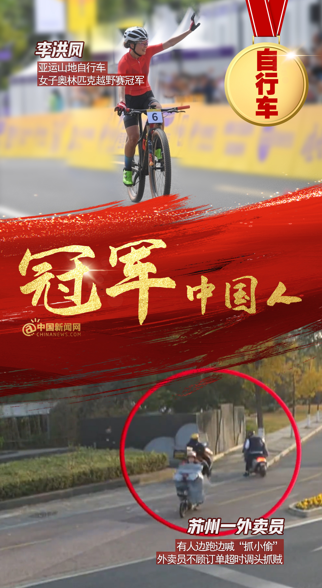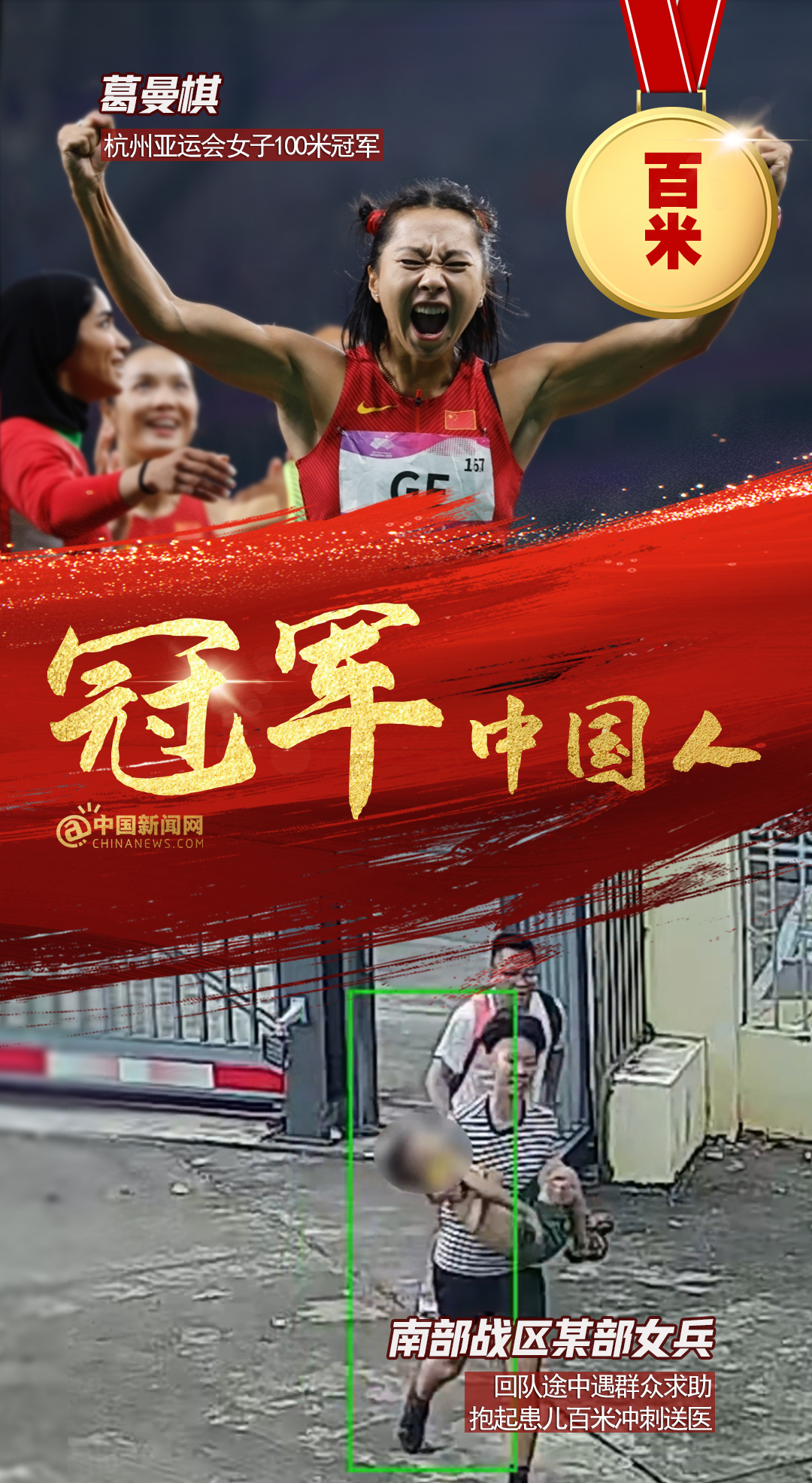 中新網(wǎng)12月15日電 全紅嬋、陳芋汐亞運(yùn)雙人10米臺(tái)奪金,彭清林跳十幾米大橋救人;中國(guó)男子4×100亞運(yùn)逆轉(zhuǎn)取勝,仙居人民醫(yī)院醫(yī)護(hù)接力搶救老人…賽場(chǎng)上,人生中,他們都是我們心中的冠軍!2023,冠軍屬于每個(gè)奮力拼搏獲得成績(jī),默默付出與人為善,激勵(lì)、幫助、照亮他人的中國(guó)人!