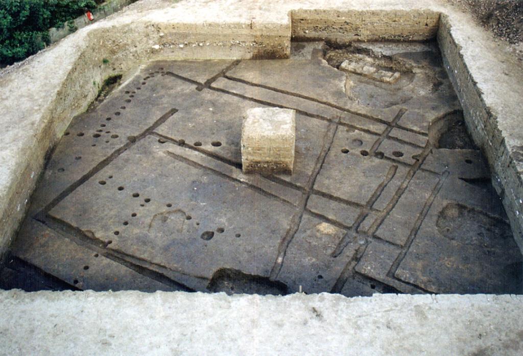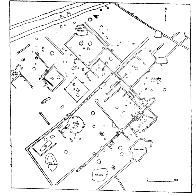 1980年11月,四川省文管會、四川省博物館與廣漢縣文化館組成聯(lián)合發(fā)掘隊,在三星堆地點(diǎn)東側(cè)進(jìn)行發(fā)掘,發(fā)掘面積1100平方米,于次年5月結(jié)束工作,發(fā)現(xiàn)房址共有18座。這些房址平面形狀有方形、長方形和圓形。通過對柱洞和溝槽推算,房屋面積一般在10-25平方米之間,多在一側(cè)開門,門的朝向不一,少數(shù)房內(nèi)有隔墻(如F2)。居住面建在生土層上,較堅實(shí),可能經(jīng)過踩踏或拍打,少數(shù)居住面上加了一層白膏泥。