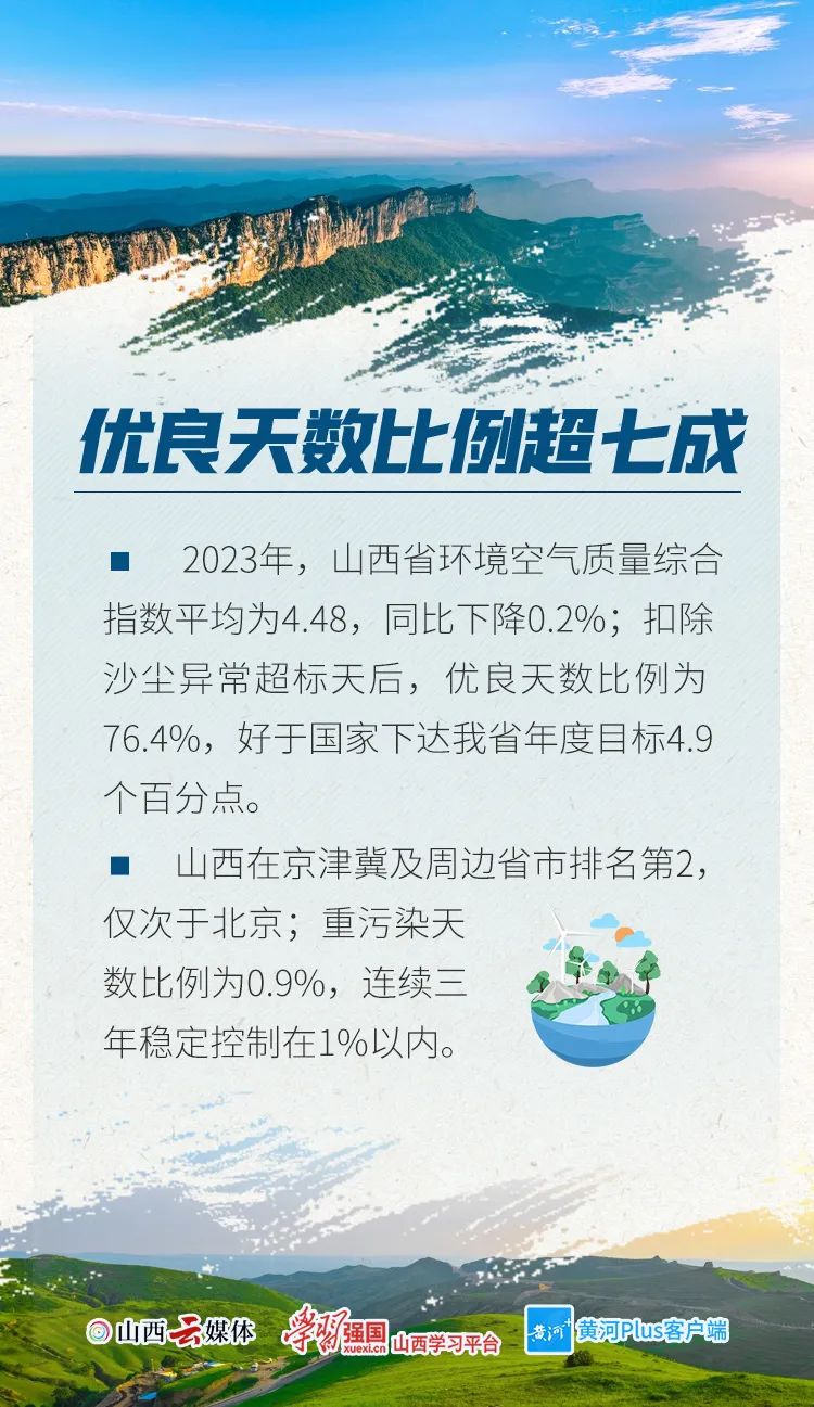 1月29日,山西省生態(tài)環(huán)境廳召開新聞通氣會。會議介紹,2023年,全省生態(tài)環(huán)境質(zhì)量明顯改善,國家下達的約束性指標任務(wù)全部完成。山西省連續(xù)兩年在黨中央國務(wù)院污染防治攻堅戰(zhàn)成效考核中評為優(yōu)秀。一組數(shù)字,讀懂2023年山西省生態(tài)環(huán)境“成績單”。