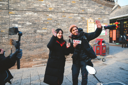 龍祥鳳瑞迎新春、龍躍鳳舞鬧新春、龍章鳳彩賀新春,熱鬧的平遙中國年吸引不少外國友人來打卡,吃美食、看文化、當回“晉商少奶奶”?!捌竭b古城歷史悠久,是曾經(jīng)的‘中國華爾街’,在全世界都非常著名,晉商票號讓人感到震撼?!迸D月廿七中午,剛剛結束山西大同行程的葡萄牙游客Joao與哥哥來到平遙古城。Joao是一位中國歷史愛好者,談起腳下的平遙古城連連豎起大拇指,“我們特意把平遙的旅程放在春節(jié)這段時間,要轉(zhuǎn)轉(zhuǎn)古城的歷史遺跡,還要看看古城的特色演出,感受一番地道的中國年?!?/p>